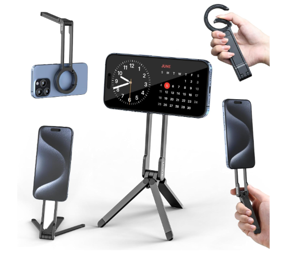 Asegura tu iPhone en un segundo y cambia fácilmente entre modo vertical y horizontal. ¡Perfecto para grabar, hacer videollamadas o crear contenido donde sea!
